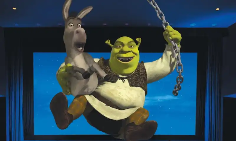 - Для проекта привлекались оригинальные голоса персонажей из фильмов: Майк Майерс (Шрек), Эдди Мёрфи (Осёл), Кэмерон Диас (Фиона) и другие — что придало аттракциону кинематографическое ощущение.